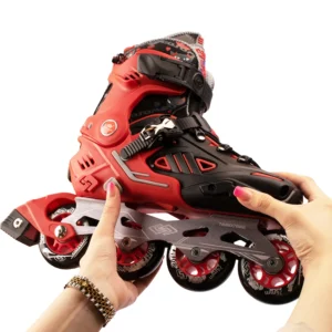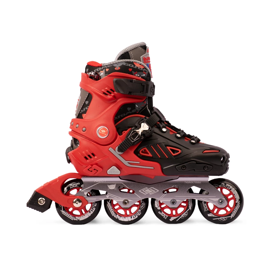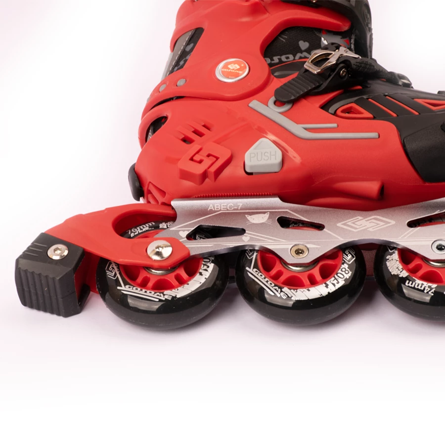 مشخصات اسکیت کفشی Gosome رنگ قرمز چرخ ژله ای با لوازم ایمنی و تیغه فلزی مدل هارد ABEC-7 کد 201774