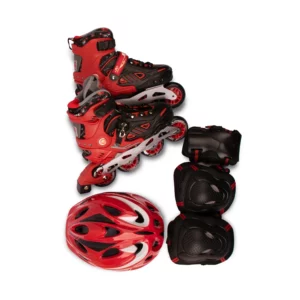 اسکیت کفشی Gosome رنگ قرمز چرخ ژله ای با لوازم ایمنی و تیغه فلزی مدل هارد ABEC-7 کد 201774